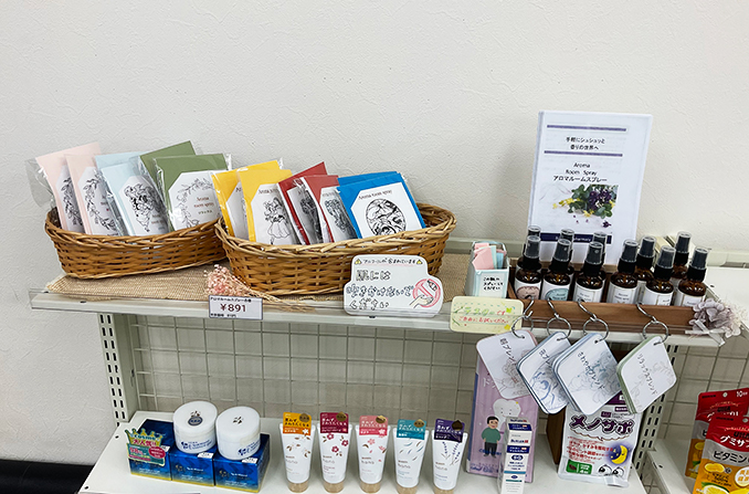 店舗スタッフが考えたオリジナルブレンドやTVで話題になったブレンドを、アロマルームスプレーとして製造し、販売しています。しらさぎ店だけでなく、他店でも販売してもらっていますが、好評いただいています。